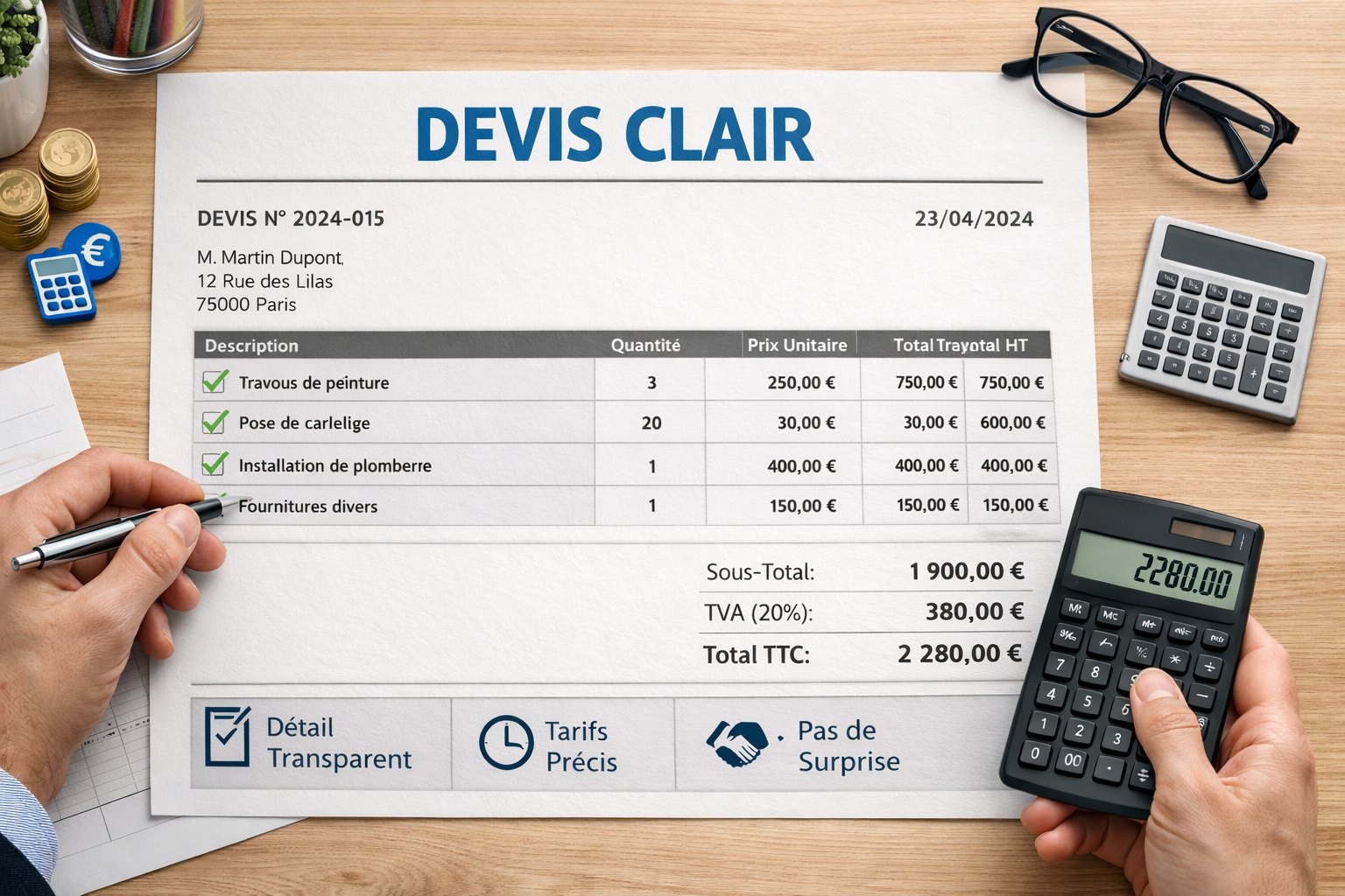 Détail de chaque poste de charge avec tarif (garantie de transparence)